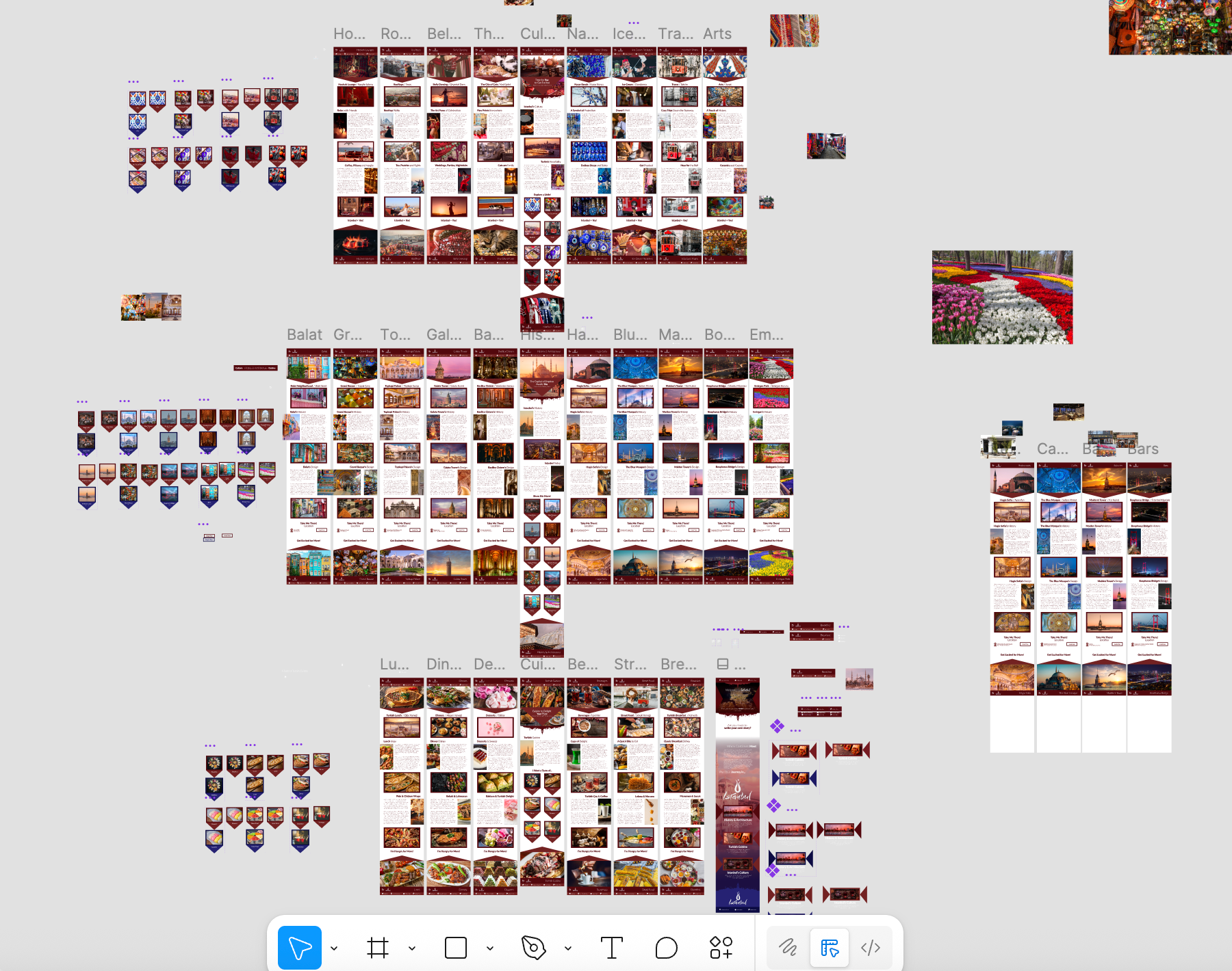 In this phase of my developing, I'd already gotten my template completely figured out. I made prototypes for buttons, and made three separate rows for each topic being Cuisine, Culture and History—both informative yet efficient!